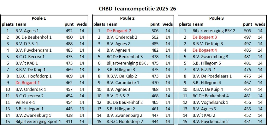 Samenstelling Bogaert teams
