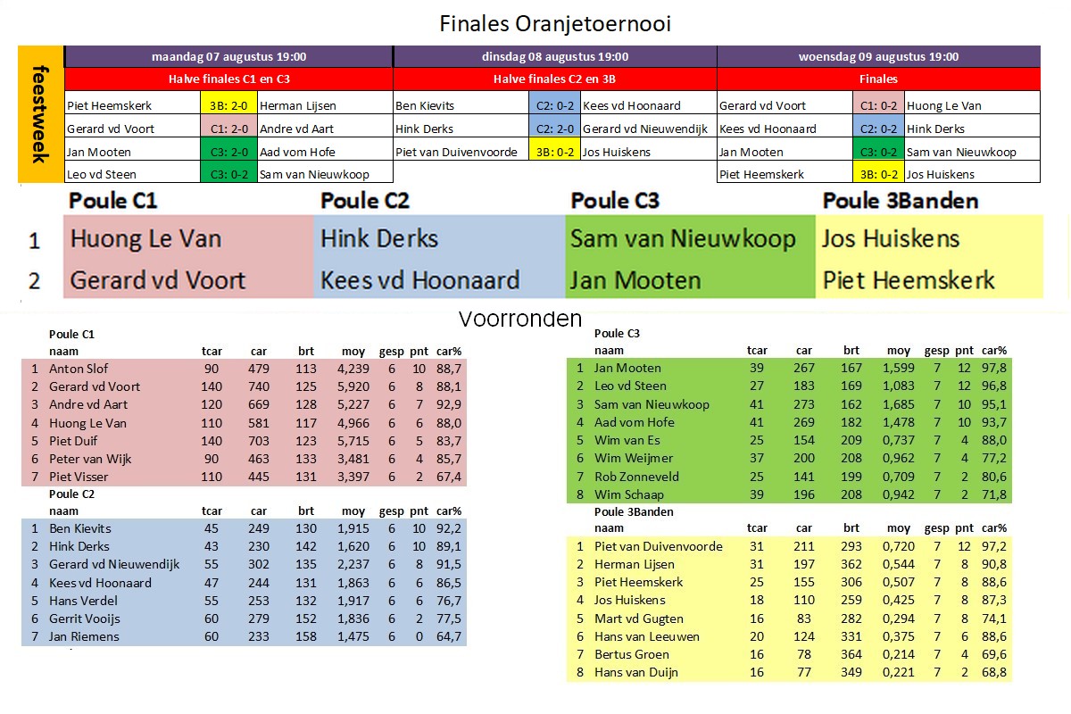 - Uitslagen en standen van het toernooi worden gepubliceerd op Biljartpoint.